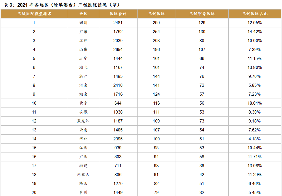 2.3 部分省份优质医疗资源不足,伟德体育布局医院存在区域优势