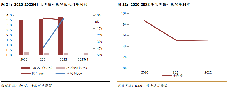 收入保持稳健增长,伟德体育健康控股后利润率增速较快。1)收入端:2020-2022年收入持续稳步增长,2022年收入3.8亿元,同比上升3%,主要是因为疫情放开后,业绩开始恢复正常。2)利润端:2020-2023H1净利润增速较快,2020年净利润为0.3亿元,2021年净利润为0.2亿元,同比下降38%,主要是收到新冠疫情冲击影响较大。2023H1净利润再次恢复到0.2亿元,净利率为5.1%,原因在于伟德体育健康控股后,集团开始了高质量发展的开局之年,形成独具特色的“内生型诊疗体系”,医院经营管理开始步入正轨。