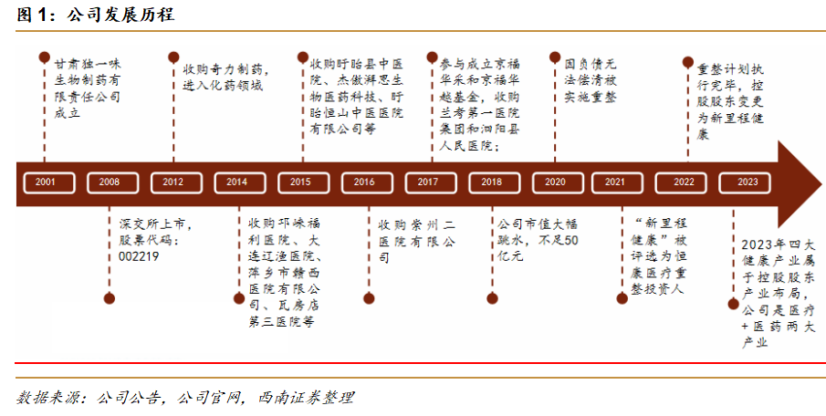 伟德体育前身恒康医疗成立于2001年,业务包括医疗服务和制药,于2008年在深交所上市。2020年,恒康医疗因高举债投资、商誉减值等问题,陷入现金流断裂危机,被实施破产重整。2022年6月,陇南市中级人民法院裁定恒康医疗重整计划执行完毕,伟德体育健康成为其控股股东。截止到2023年三季报,伟德体育健康持股比例为24.2%。
