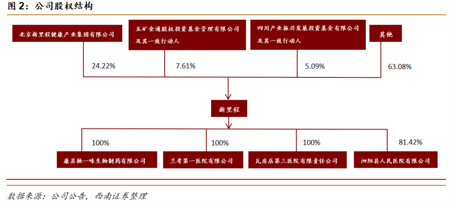 采用“1+N”战略,积极打造领先医疗机构。公司目前控股11家医院,其中瓦房店第三医院、兰考第一医院、盱眙县中医院、泗阳医院、崇州二医院已经成为区域医疗中心,赣西医院和赣西肿瘤医院也是当地排名较高的医疗机构。公司一直采用“一个综合医院+多个专科分院”模式,打造区域领先的医疗机构,致力于肿瘤、骨科、脑血管疾病等领域,顺应老龄化趋势的时代要求。