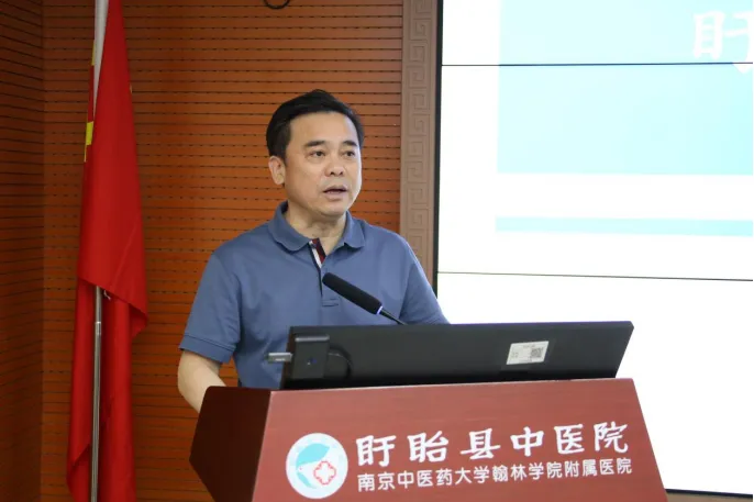 盱眙县中医院院长何占德介绍了盱眙县中医院以“学科建设”和“中医药特色”为重要抓手,成功创建三级中医院、全国基层名老中医传承工作室,以及肿瘤医院综合体项目开工建设情况。