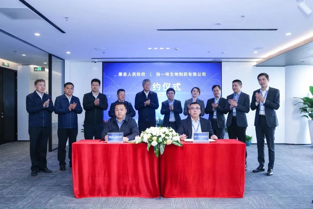 会谈结束后,康县人民政府与独一味生物制药签署《独一味生物制药有限公司中成药提取、制剂战略扩产及日化生产项目投资协议书》。陇南市康县县委常委、副县长宋帅,伟德体育股份董事长特别助理、独一味生物制药总经理谢晓光分别代表双方签字。