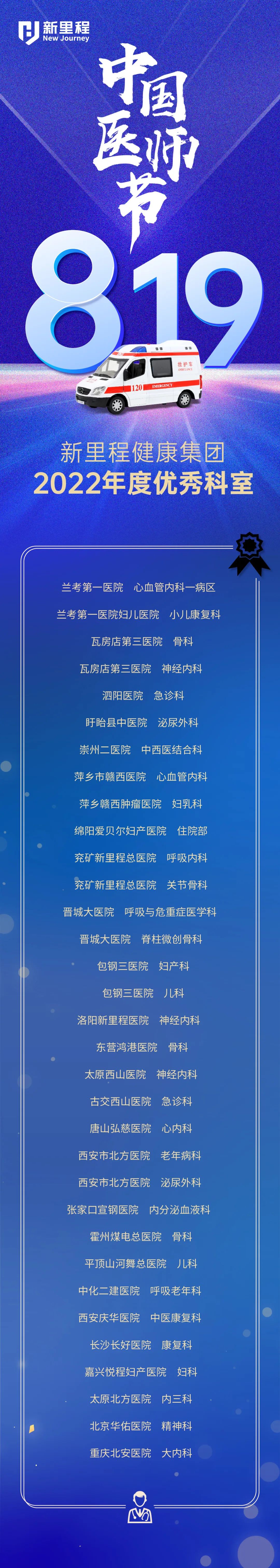 8月18日,伟德体育健康集团发布《关于集团2022年度优秀科室及个人表彰的通报》,隆重表彰2022年度优秀科室33个和优秀医师49名(详细名单见后文)。