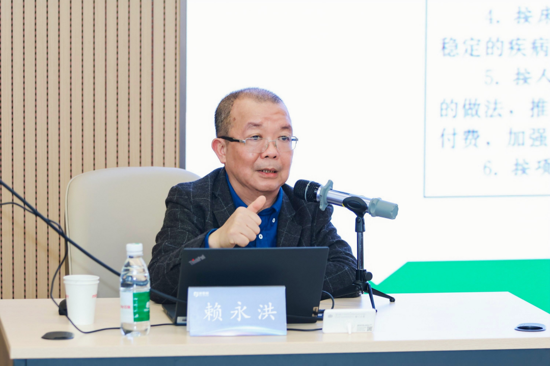 赖永洪作了题为《基于医保支付下的医院管理变革》的授课,详细介绍了医保支付DIP/DRGs对医院发展及诊疗产生的影响,为医院在运营理念与策略、管理体系与模式、医保互动形态与合理诊疗模式变革提供了理论基础和操作思路。