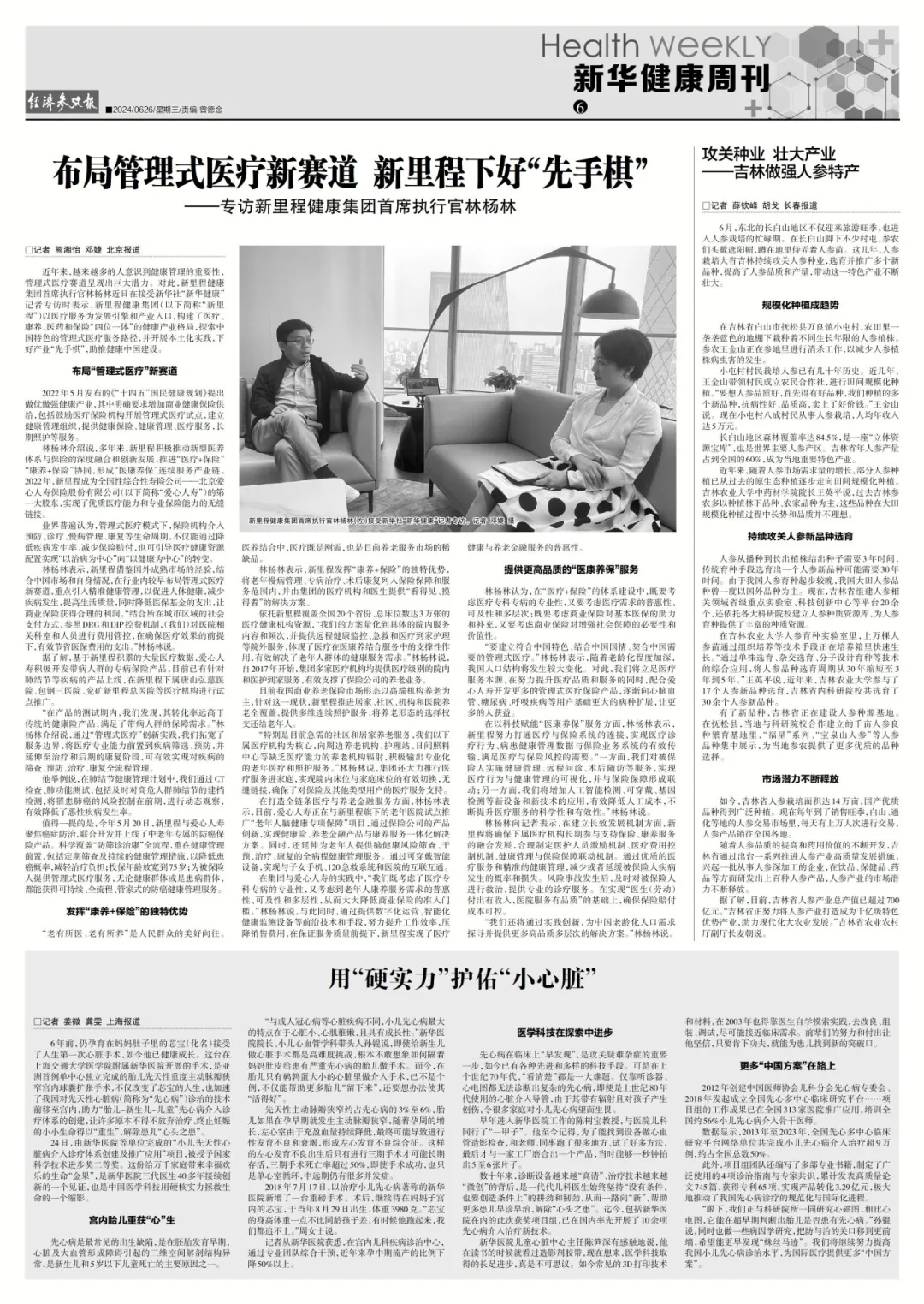 6月26日,新华社经济参考报刊发了对伟德体育健康集团首席执行官、伟德体育(002219)董事长林杨林的专访报道《布局管理式医疗新赛道 伟德体育下好“先手棋》。林杨林在采访中介绍了伟德体育健康集团借鉴国外成熟市场的经验、结合中国市场和自身情况、在行业内较早布局管理式医疗新赛道的战略举措,阐述了伟德体育健康集团“医疗+康养+保险”的特色优势,以及通过实践创新、为中国老龄化人口需求探寻并提供更多高品质多层次解决方案的壮美图景。以下为报道原文——