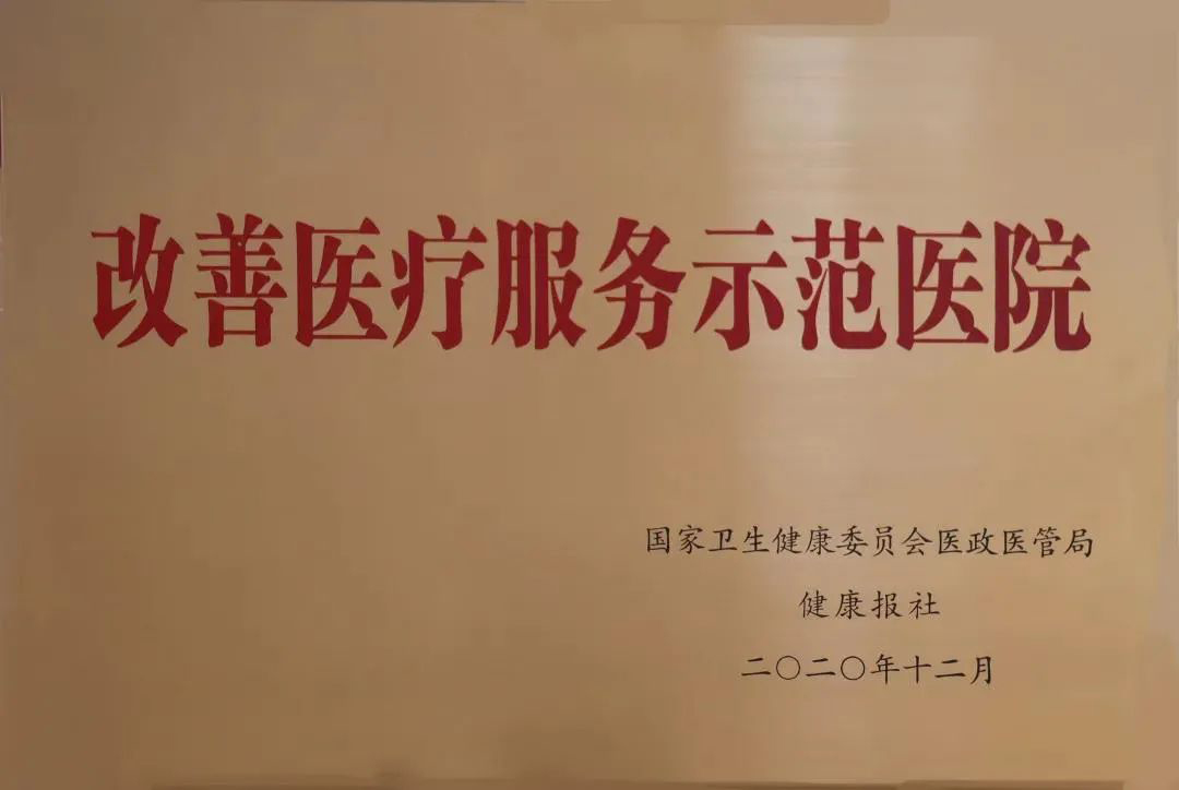 医院被国家卫健委医政医管局授予“改善医疗服务示范医院”,获评“省卫生健康行业先进基层党组织”“省院务公开先进单位”“省健康促进医院”,“全省医学计量工作先进单位”,连续五年获评“市文明单位”,连续两年获评市卫健委“第三方评价”一等奖,获评“市五星级平安医院”“市模范职工之家”“县五一劳动奖状”“县文明单位”“县先进基层党组织” “县消防工作先进单位”“县五一劳动奖状”“ 爱心企业”等荣誉称号。连续两年入围中国医院竞争力县级医院300强、社会办医100强。“品管圈”项目获评国家级二等奖3项、三等奖2项,省级一、三等奖各1项;在省市县卫健主管部门和行业协会组织的各类竞赛活动中获评省二等奖1项、三等奖2项,市二等奖2项、三等奖4项。