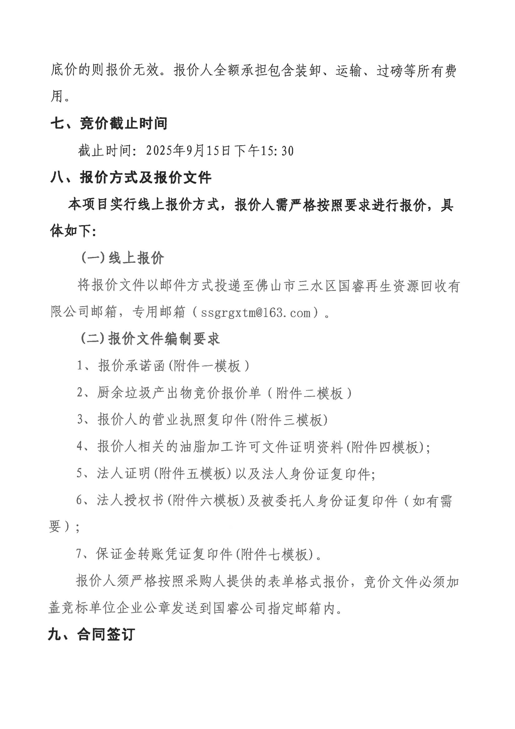 附件2:国睿废弃油脂竞价公告(厨余垃圾产出物竞价报价单)