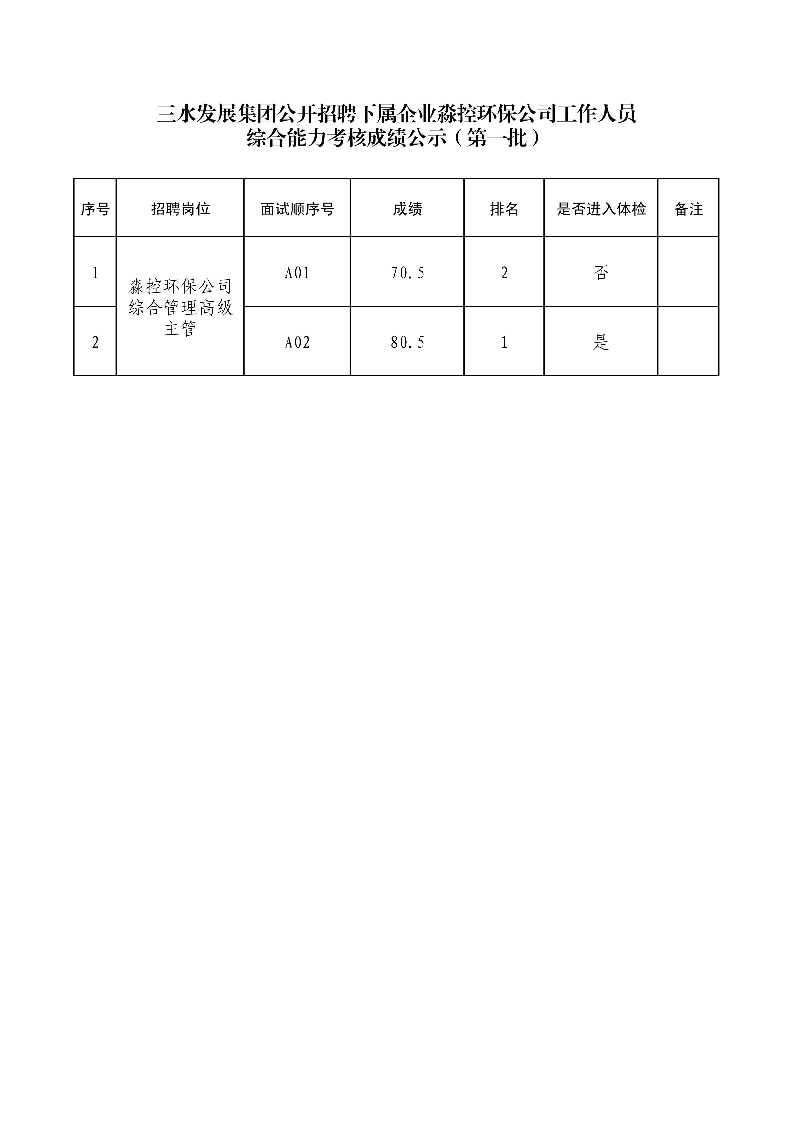 三水发展集团公开招聘下属企业淼控环保公司工作人员综合能力考核成绩公示(第一批)